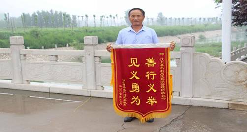 8月1日,渠庄户村的村民渠某携其家人将一面书写着“善行义举 见义勇为”的锦旗送到了汶上中都水务公司陆敦岭手中,以感谢其救命之恩。